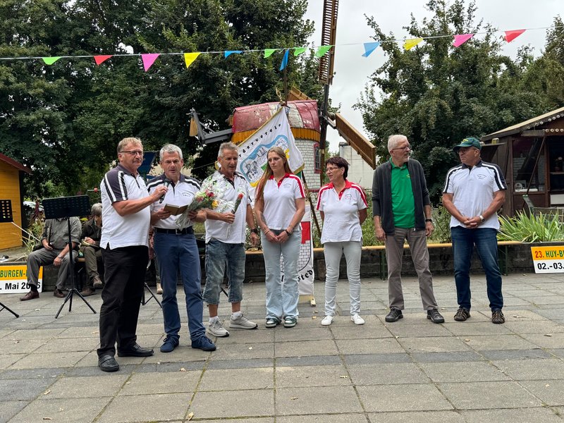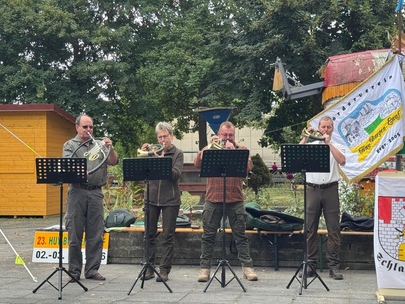 Ebenso Fam. Lerche, die ehemaligen Besitzer der Westerburg und Fam. Gauch, unseren ehemaligen Versorger (mit 2 Feldküchen) auf der Huysburg. Weitere liebe Gäste, die auch für die kulturelle Umrahmung sorgten, waren die Jagdhornbläser Eilenstedt, der Spielmannszug aus Schladen, Sängerin Isabell Fricke, die auch mehrfache Huy-Burgen-Läuferin ist und unser DJ Lothar (auch Vereinsgründungsmitglied).